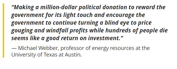 Then again, he and the rest of his cronies are getting paid handsomely for their looking the other way. Gov. Greg and Lt. Dan you already know. Perhaps less familiar are State Rep. Chris Paddie (R-Marshall, HD9) and State Sen. Charles Schwertner (R-Georgetown, SD5). Anyway, they’re among the legion of elected officials the energy business backed it cash trucks up for.